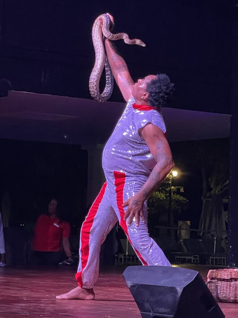 The waterfront activities were another highlight. We enjoyed paddle boarding, kayaking, and water biking, all available for guest use. Snorkelling and boat rides on the sailboat were fantastic, and the paid excursions, such as swimming with dolphins at Dolphins Cove, added an extra layer of adventure. The nighttime entertainment was equally impressive, with shows featuring a Michael Jackson impersonator, magic acts, fire shows and more, keeping the whole family entertained.